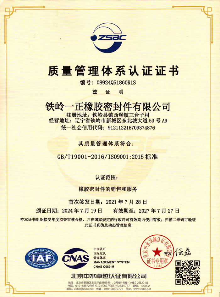 公司资质-铁岭PA集团橡胶密封件有限公司